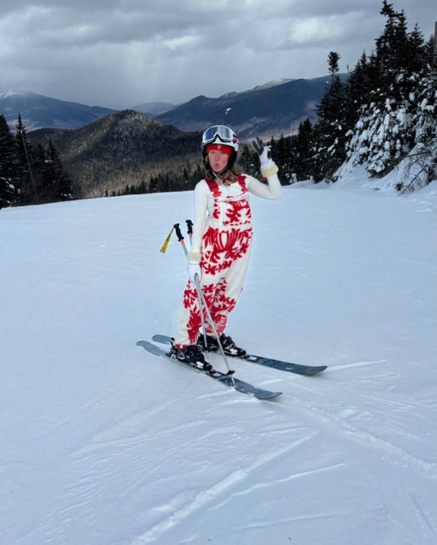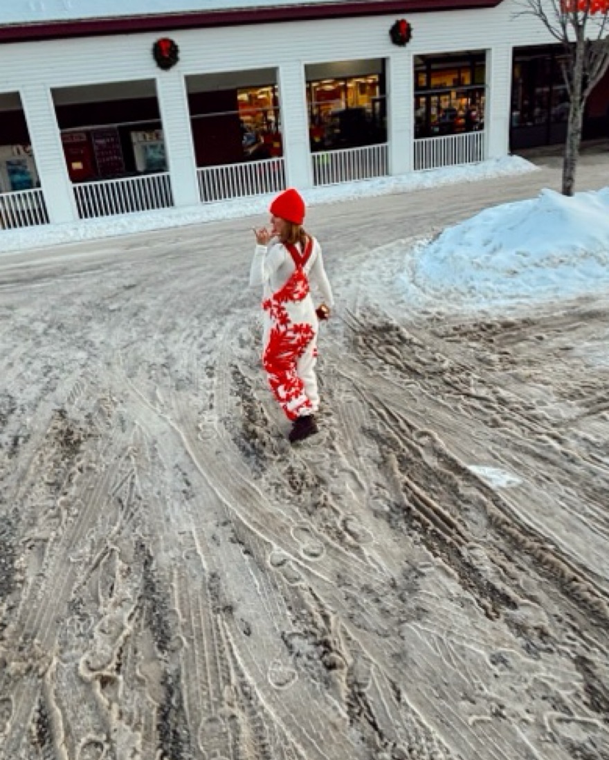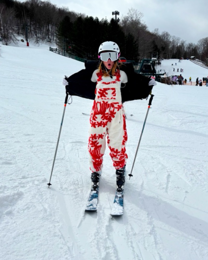This vibrant and eye-catching ski outfit is perfect for hitting the slopes in style. The bold floral pattern adds a touch of playfulness to your winter sportswear.