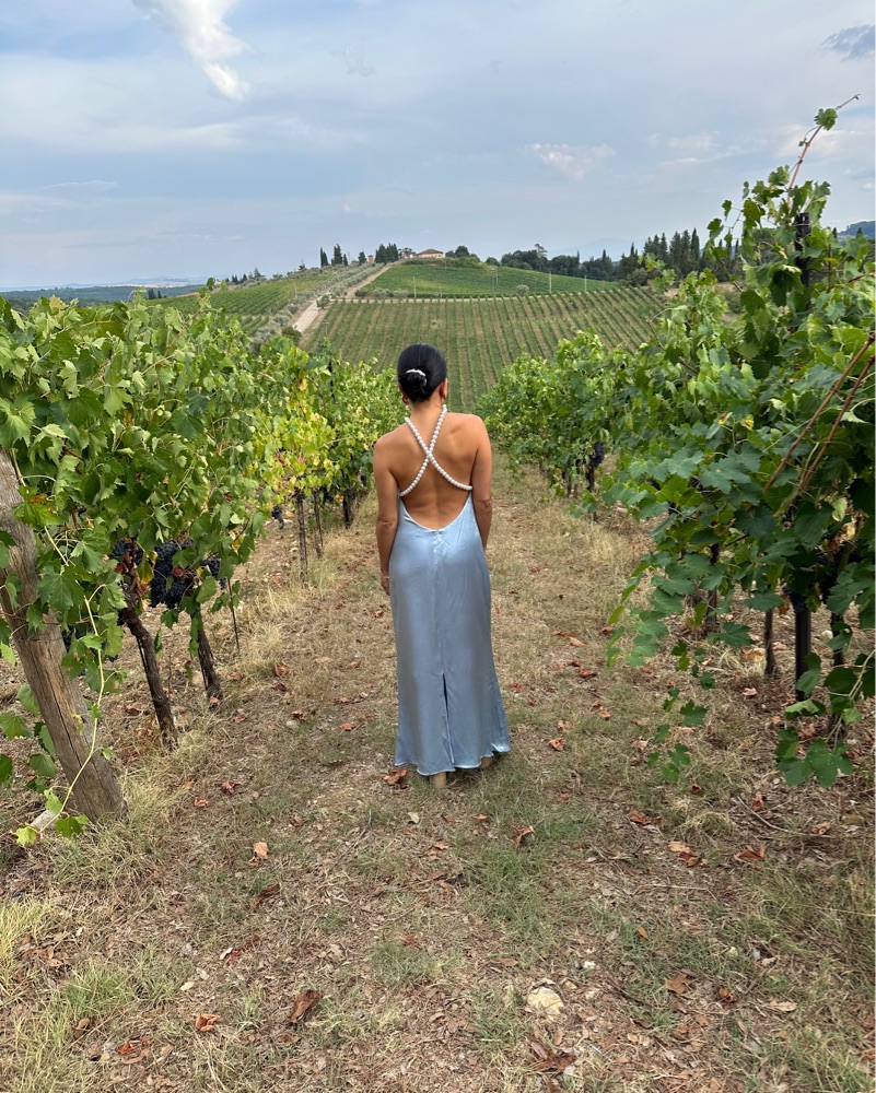 Wore this gorgeous blue satin dress once for a wedding in Italy. In amazing condition. The perfect summer or spring wedding guest dress!