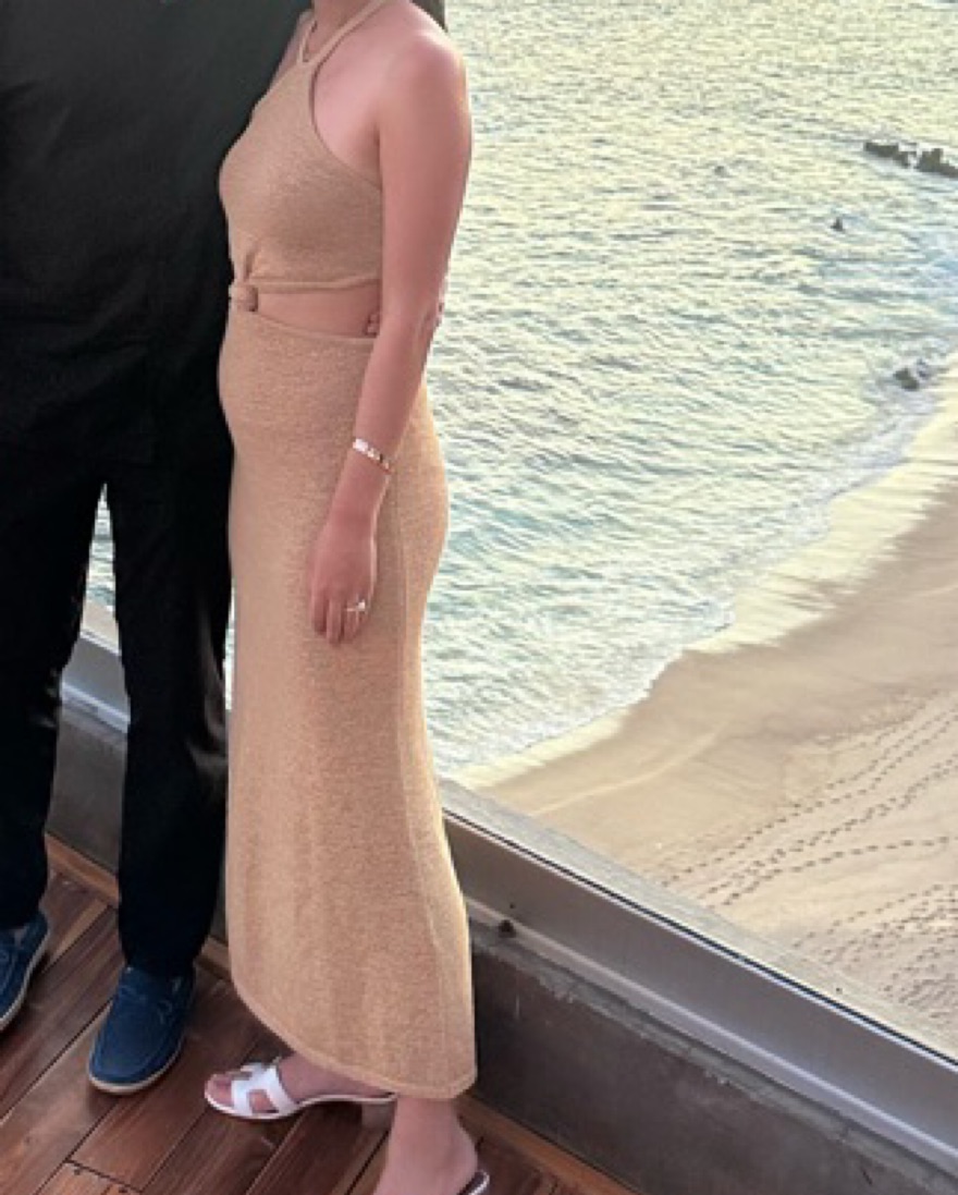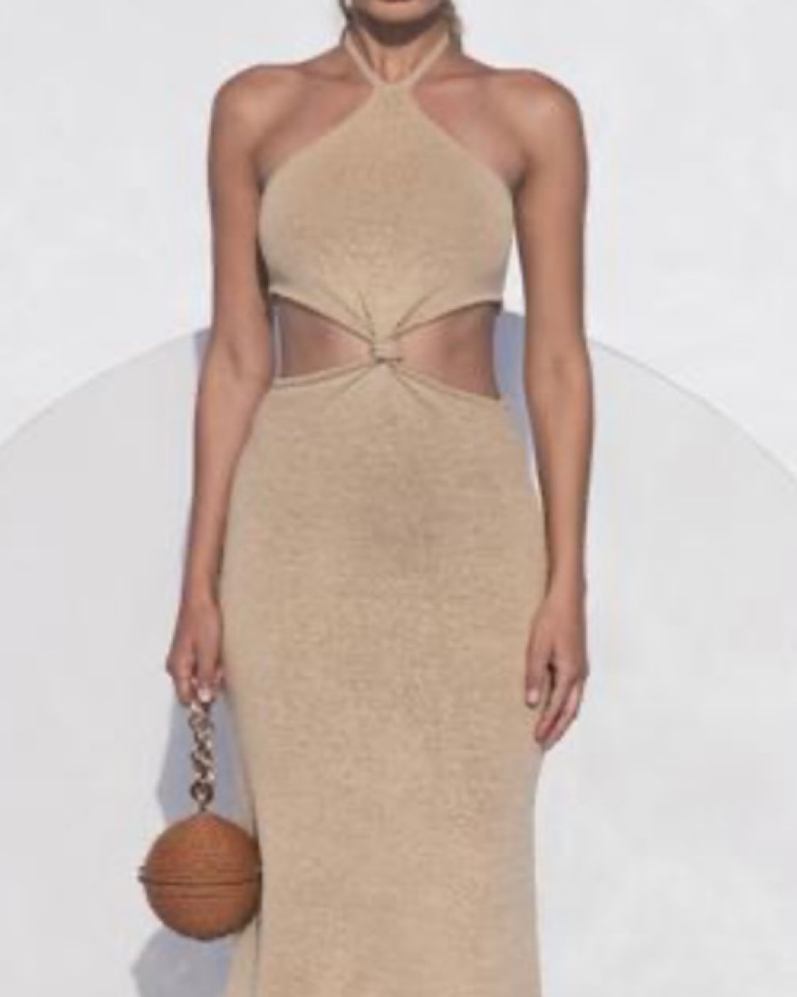 Cult Gaia Cameron Midi knit dress in XS. Taut at the center with a knot, this knit dress in cotton jersey features a halter neckline, thoughtful cutouts and open back.