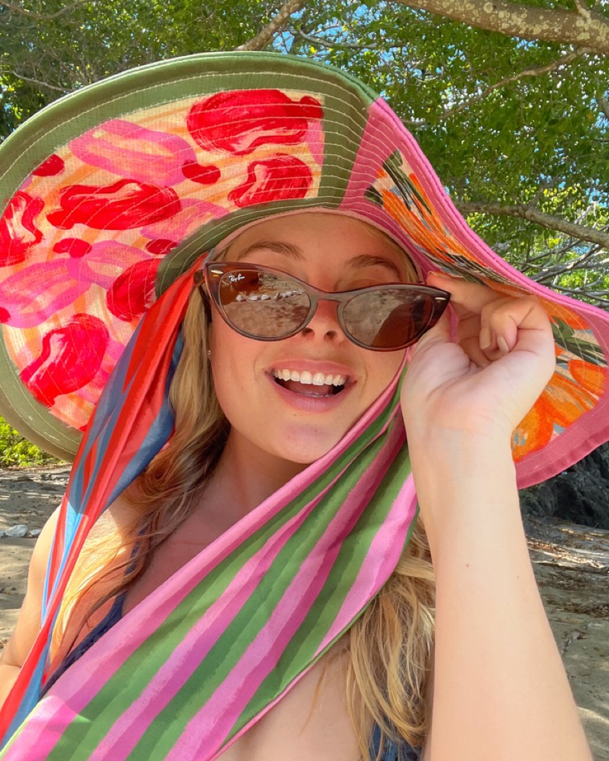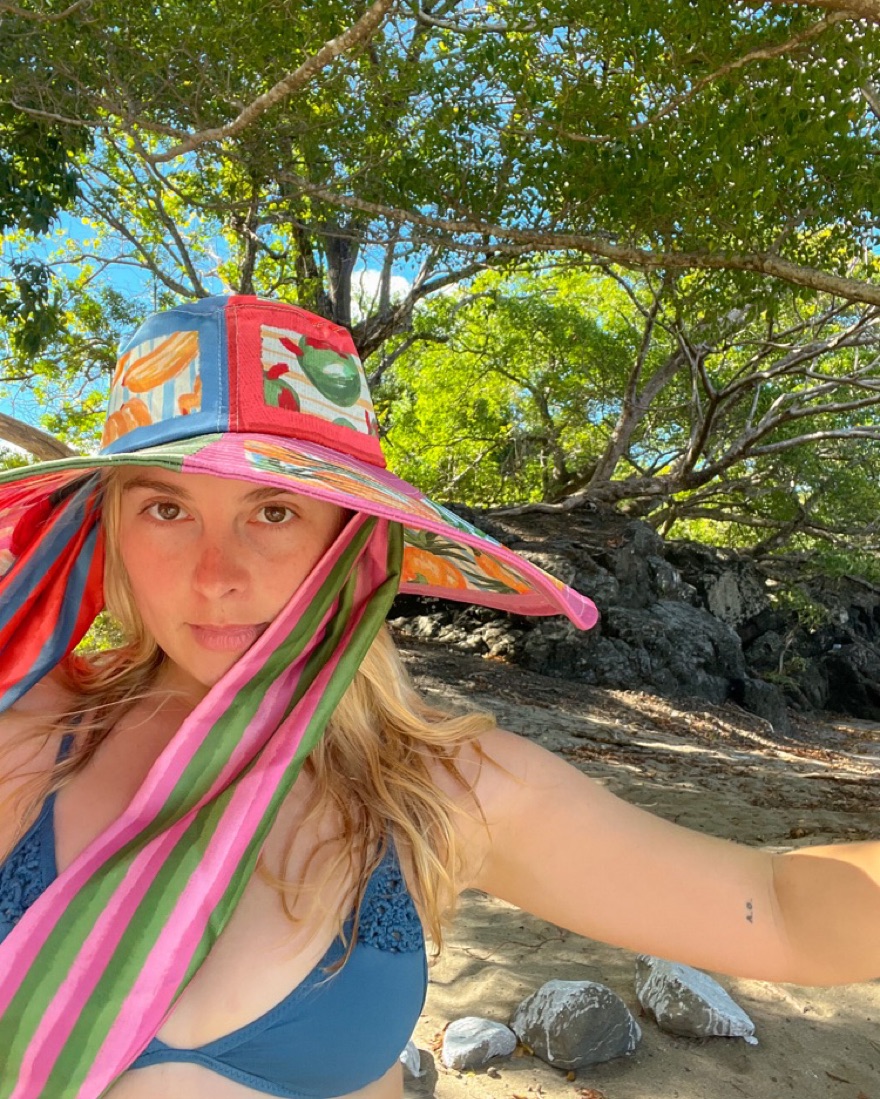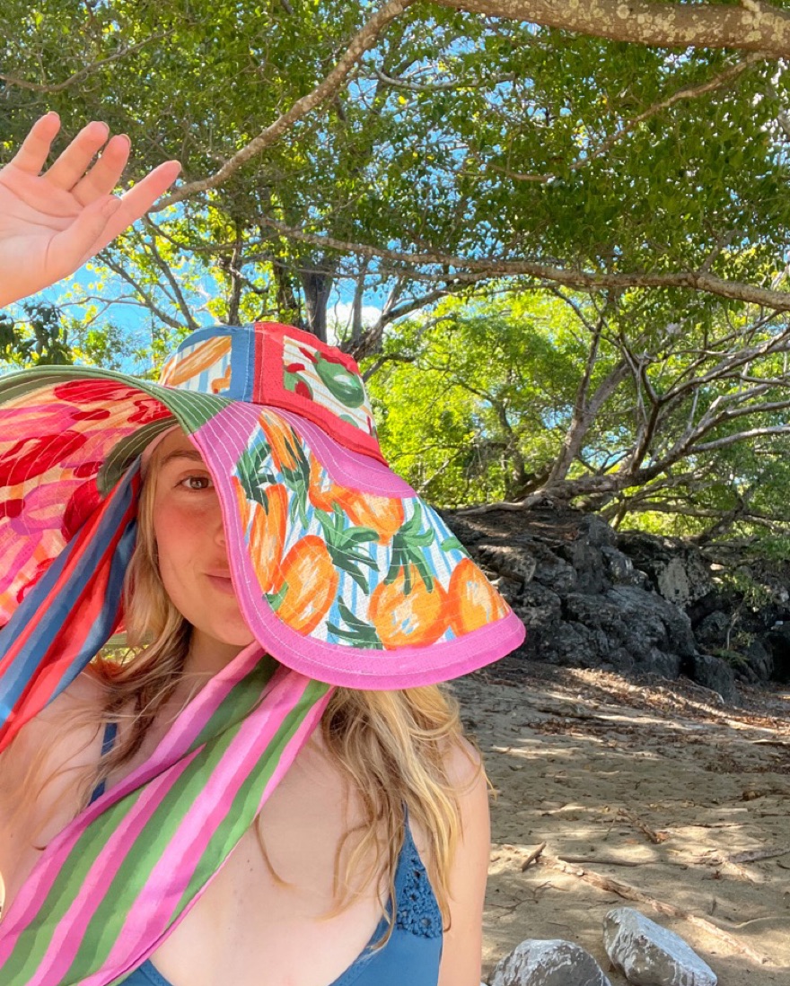 Their giant hat is perfecf for vacation. Only worn for the pics, this hat is in perfect condition.
