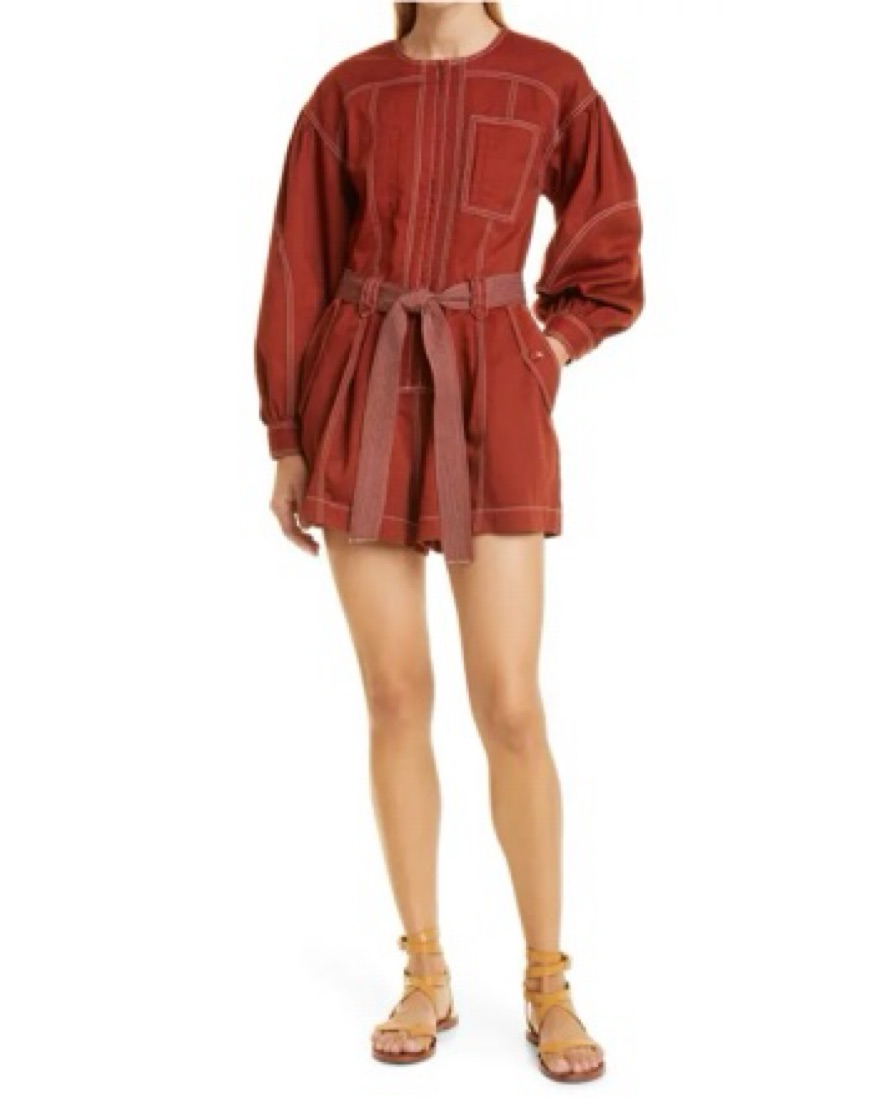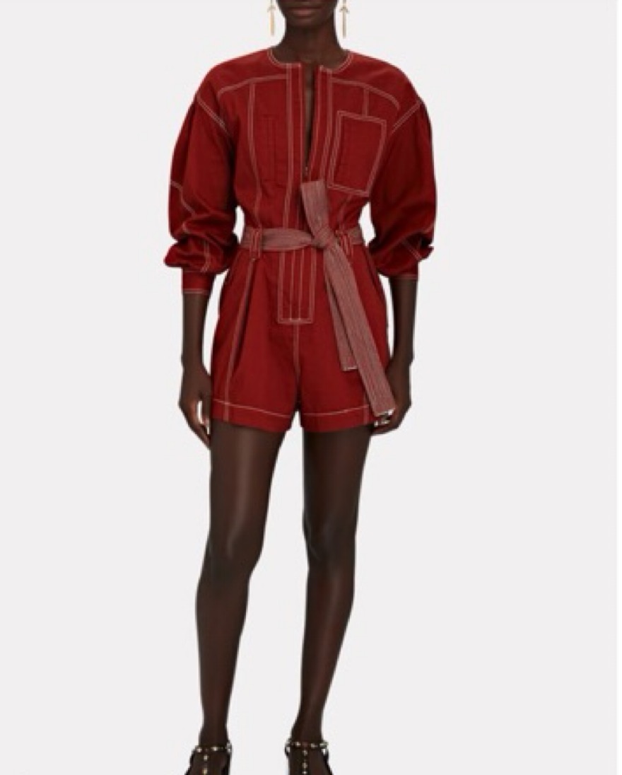 Delta Topstich Long Sleeve Cotton Romper by Ulla Johnson - Pickle